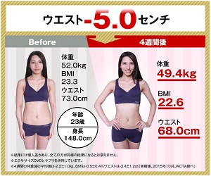 4週間後の体験者の二人とも、ウエストが-4.5~-5.0と引き締まっています。
